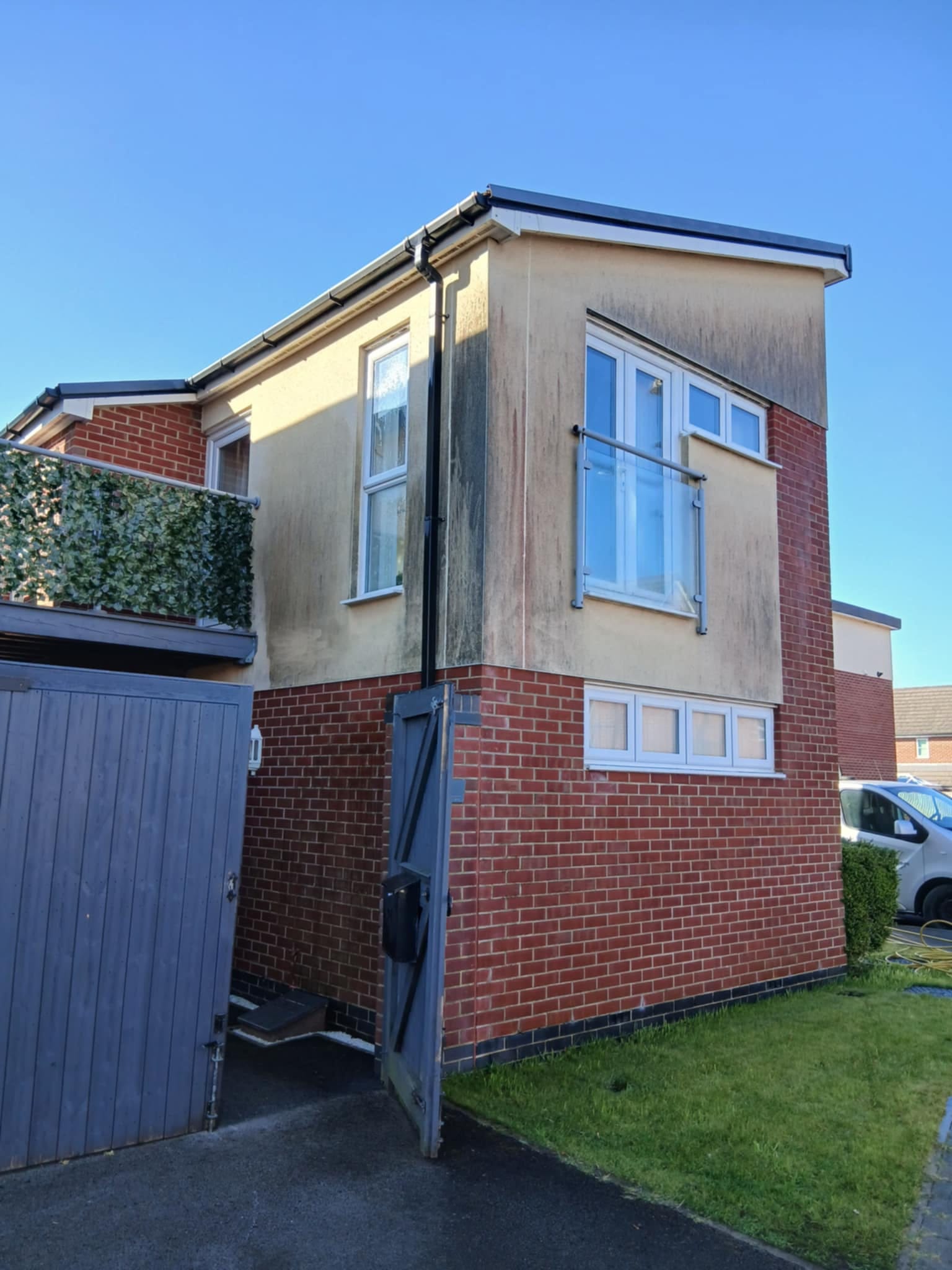 Over time, render can become dull, green, or black with algae growth. Many homeowners think repainting is the only solution, but our render cleaning and softwashing techniques can restore the original finish at a fraction of the cost. With Stoke Jetwash, your home or commercial property can look like new again – without unnecessary expense.
